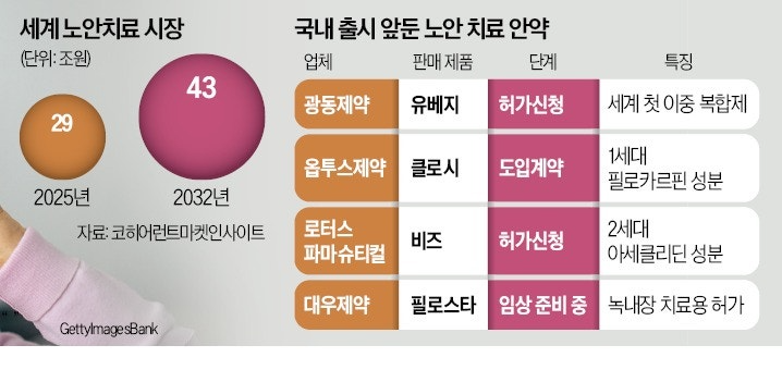 이르면 올해 국내서도 안약으로 노안을 관리하는 시대가 열린다. 국내 시판 승인 절차를 밟고 있는 제품들이 미국서 허가받으면서다. 고령 인구가 증가하는 데다 부작용을 줄인 차세대 노안 치료제가 속속 등장하자 제품 도입에 나서는 국내 제약사가 늘고 있다.