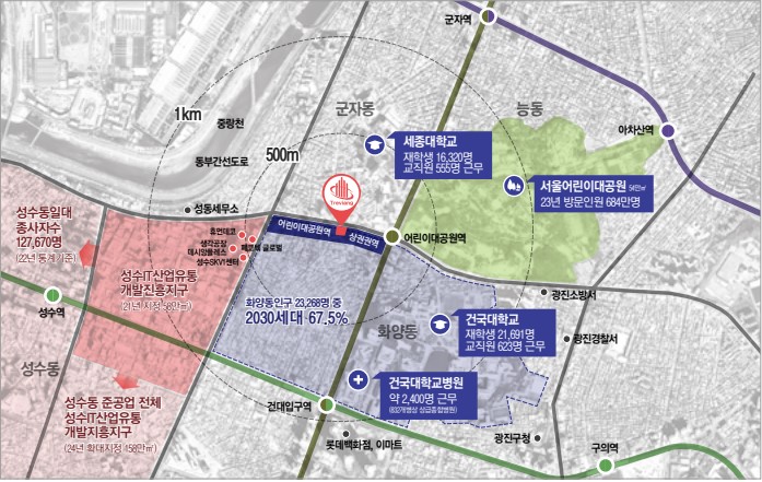 세종대, 건국대, 한양대, 성수it밸리등 배후 수요 약8만7천여명