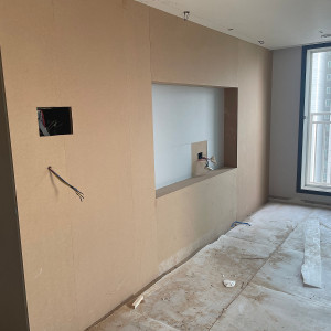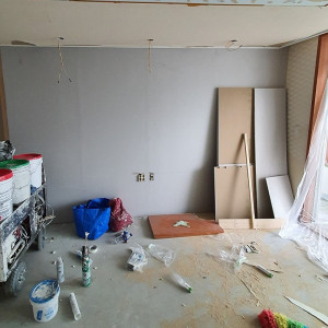 거실 부분인데 곰팡이가 심해서 벽지를 뜯어냈습니다